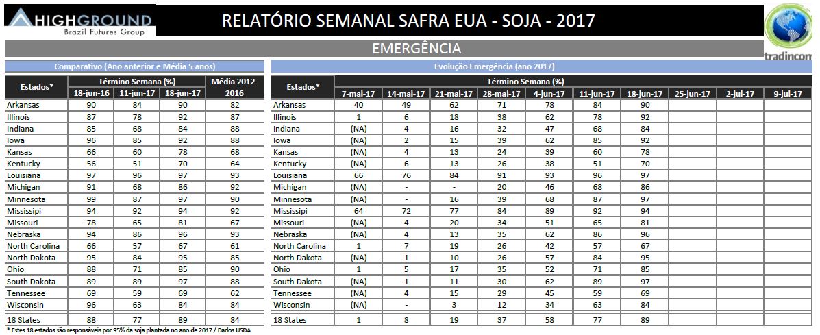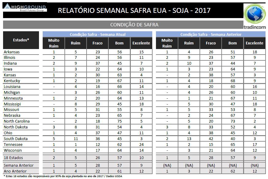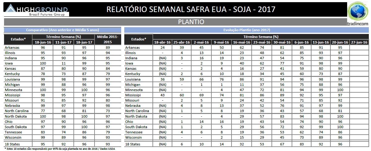 Relatório Semanal de Andamento de Safra de Soja dos EUA – USDA – 19.06.2017