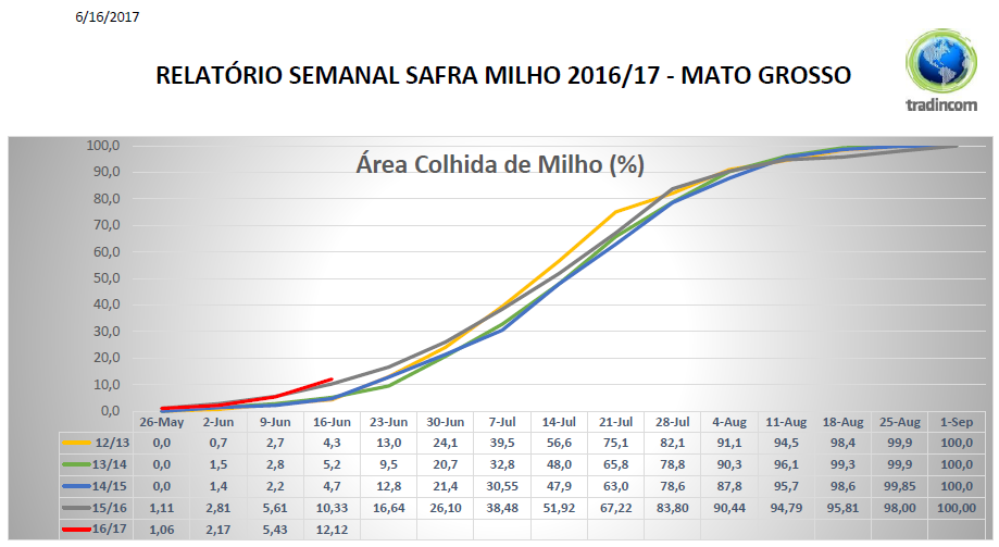 Relatório Semanal Safra de Milho – Colheita – Mato Grosso 16.06.2017